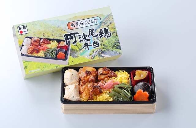 ご予約商品のお受け取り場所については 下記のURLをご確認ください。 https://jrsstation.base.shop/p/00003 栗尾商店監修 阿波尾鶏弁当 徳島の老舗銘菓「栗尾商店」監修のもと、徳島の地鶏「阿波尾鶏」を使用した駅弁となります。 阿波尾鶏むね肉・もも肉を塩焼き・照焼きで仕上げ、錦糸玉子・山菜など彩り豊かに盛り付けました。 お品書き 茶飯白だしご飯(180g)、阿波尾鶏むね塩焼き、阿波尾鶏もも照焼き、錦糸玉子、山菜煮、紅生姜、椎茸煮、人参煮、みつ芋 容器外寸 10.5cm× 19.6cm× 5.2cm ※こちらのお弁当は、「安藤商店」でのご予約は受け付けておりません。 ※システムの関係上ご注文画面で、お届け先ご住所等の入力が必須となってておりますが、ご自宅への発送は行っておりませんのでご了承ください。